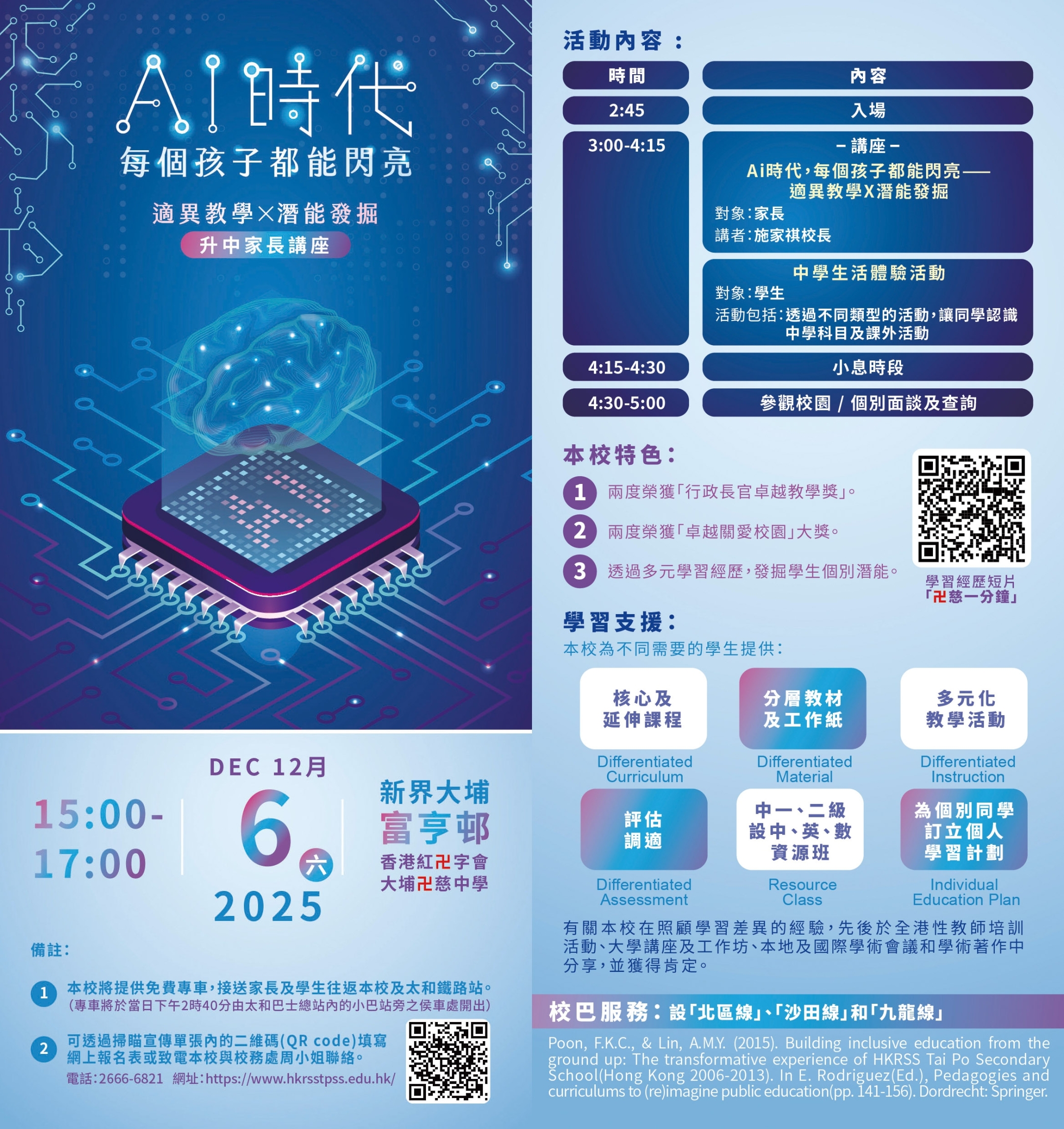 2025年12月6日舉行:「AI時代,每個孩子都能閃亮——適異教學×潛能發掘」升中家長講座