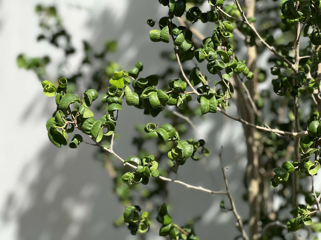 多年生常綠喬木,樹皮灰白,葉橢圓形、葉緣波狀或捲曲,葉片是呈一串串生長的狀態,並帶有翠綠耐明亮的光澤,需要養在光照較多的地方。如果環境過度陰暗,會導致葉子不斷脫落。