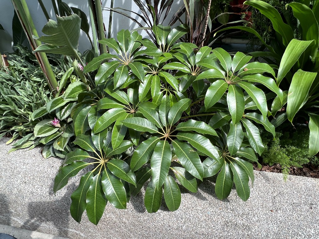 因原產地澳洲及株體葉形如鴨腳,故名,澳洲鴨腳木。幹通掌狀複葉,幾乎集中於頂端,故有「傘樹」之稱 ,澳洲稱為「昆士蘭傘樹」,可作為木屐、冰棒棍、冰淇淋的小木匙、火材棒或是木片便當盒等原料。在夏季開花時呈紅色,繖形花序排列於分岐五至八條的總狀花序上,所以又被稱為「八達通樹」。