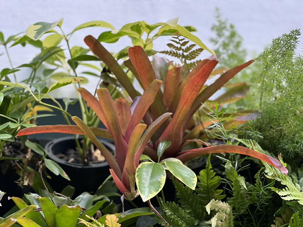 附生於樹上,植株中央可以蓄積雨水,母體周邊會透過走莖長出其他許多的分株,葉型茂密呈玫瑰狀,葉邊圍繞著尖刺。花的總梗位在葉環中的積水正中央,所有花生在同一花梗,花瓣呈星狀。花序十分緊密,花型簡單,呈傘房狀。