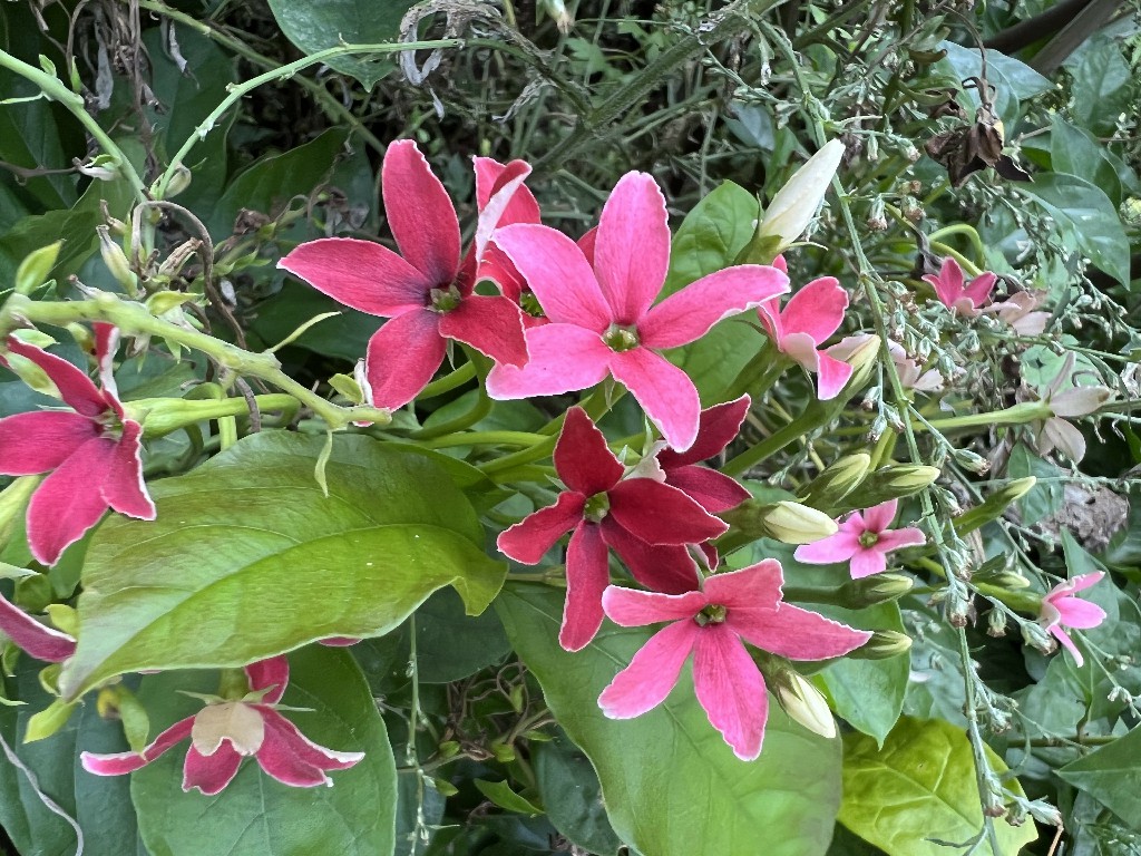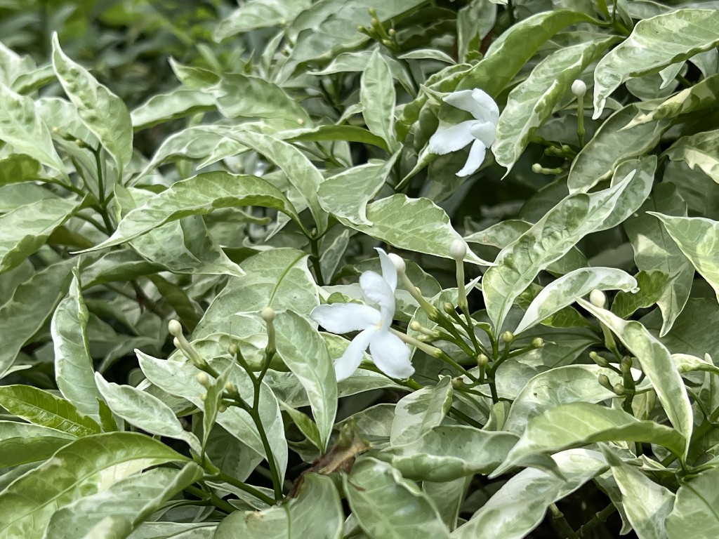 又名斑葉馬茶花,常綠灌木,園藝栽培種,是山馬茶的斑葉品種,單葉對生,聚傘花序,花白色,有香味,花萼五裂,花萼内基部具腺體,高腳碟形花冠,5瓣,排列如風車形,雄蕊五枚,着生於花冠筒。