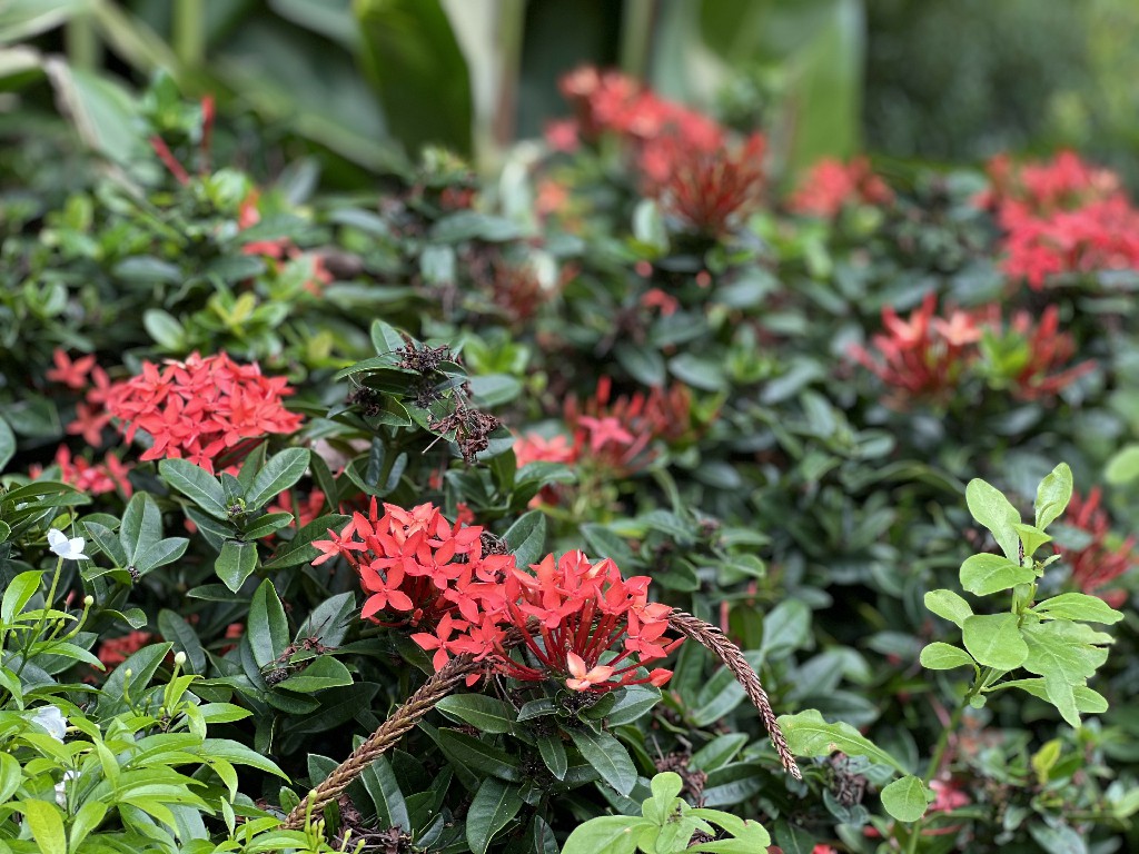 又名小葉龍船花、紅仙丹花,為「沖繩三大名花」之一,屬常綠灌木或小喬木,高可達3至4米;葉長橢圓形,葉片狹長,先端鈍,硬紙質,葉基心形至楔形,葉先端圓,有時段突尖或短急尖;聚傘花序稠密,橙紅色,核果球形或略呈壓扁形。因為花期很長,而且花序的排列相當美觀,顏色也較豔麗,所以最常被用來當作盆栽來美化庭園。