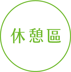 在綠意盎然下,配置戶外桌椅,加上太陽傘的護蔭,儼如置身休閒茶座,令人放鬆心情。在稍休歇息後,自能倍感愜意,增加正能量。